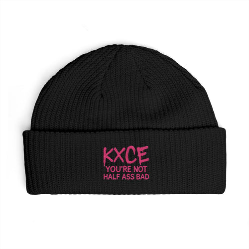 Cuff Beanie — Embroidered "KXCE You’re Not Half Ass Bad" Knit Hat